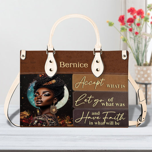 Black Queen Have Faith In What Will Be - Personalized Leather Handbag