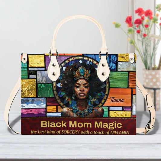 Black Mom Magic Motivational - Personalized Leather Handbag
