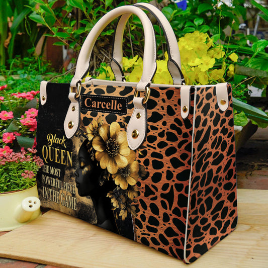 Black Queen Leopard Print Afro Women - Personalized Leather Handbag