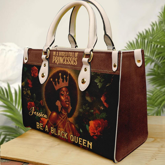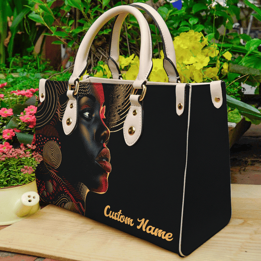 Black Woman Afrocentric Art - Personalized Leather Handbag