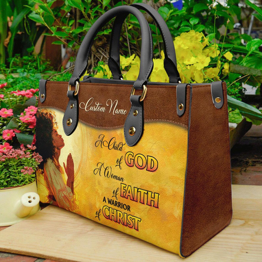 A Child of God, Woman of Faith, Warrior of Christ Personalized Leather Handbag