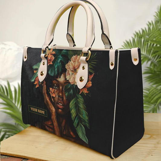 Elegant Afro Woman Tropical Queen Floral - Personalized Leather Handbag