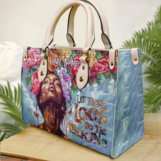 Let these Locs Do the Talking Black Queen Floral - Personalized Leather Handbag